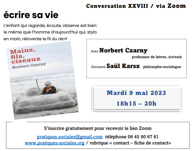 You are currently viewing Conversation XXVIII – mardi 9 mai 2023 / 18h15 – 20h00 – Ecrire sa vie